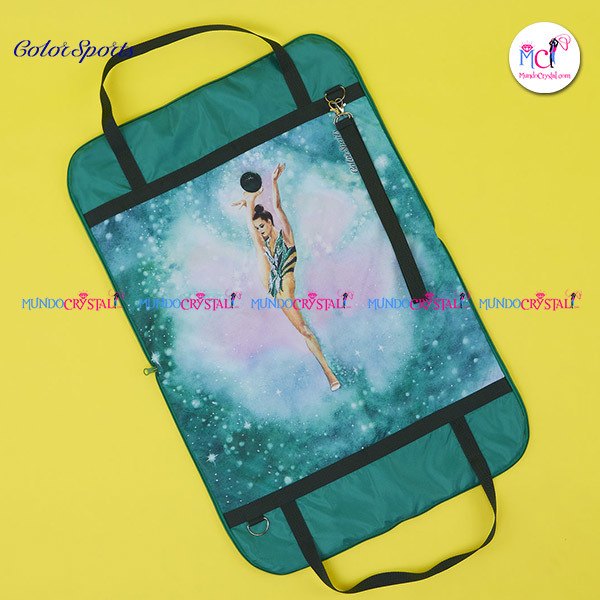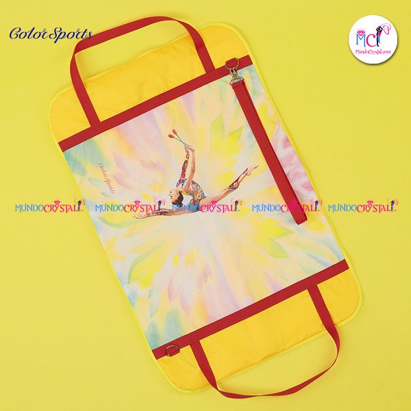 Porta Mallas con diseño de gimnasta en el frontal. Hecho de tela gruesa impermeable. Dentro de 2 bolsillos con una cremallera donde puedes poner los accesorios necesarios. Además incluye una cinta / correa para que la puedas colgar fácilmente del hombro. Cierre externo de cremallera. Cuando se cierra, se convierte en una bolsa bien cerrada. El tamaño es de 50 x 80 cm.